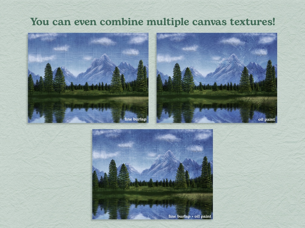 This brush pack is complete with 25 canvas texture overlay brushes! They are perfect for adding the most realistic texture to your designs, and making it look like your digital design was drawn or painted on a physical surface!